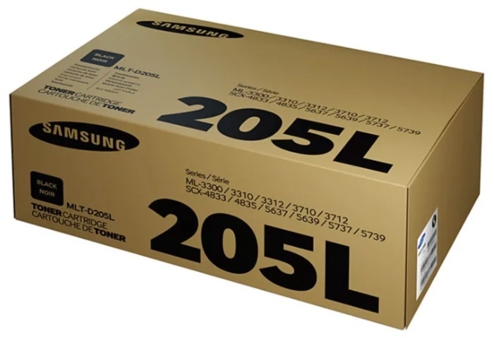 Картридж Samsung MLT-D205L (SU965A) черный. Совместим с принтерами: Samsung ML-3310ND, ML-3310D, SCX-4833FR, ML-3710D, SCX-4833FD, ML-3710DW, ML-3710ND, SCX-5637FR. Ресурс картриджа: 5000 страниц.